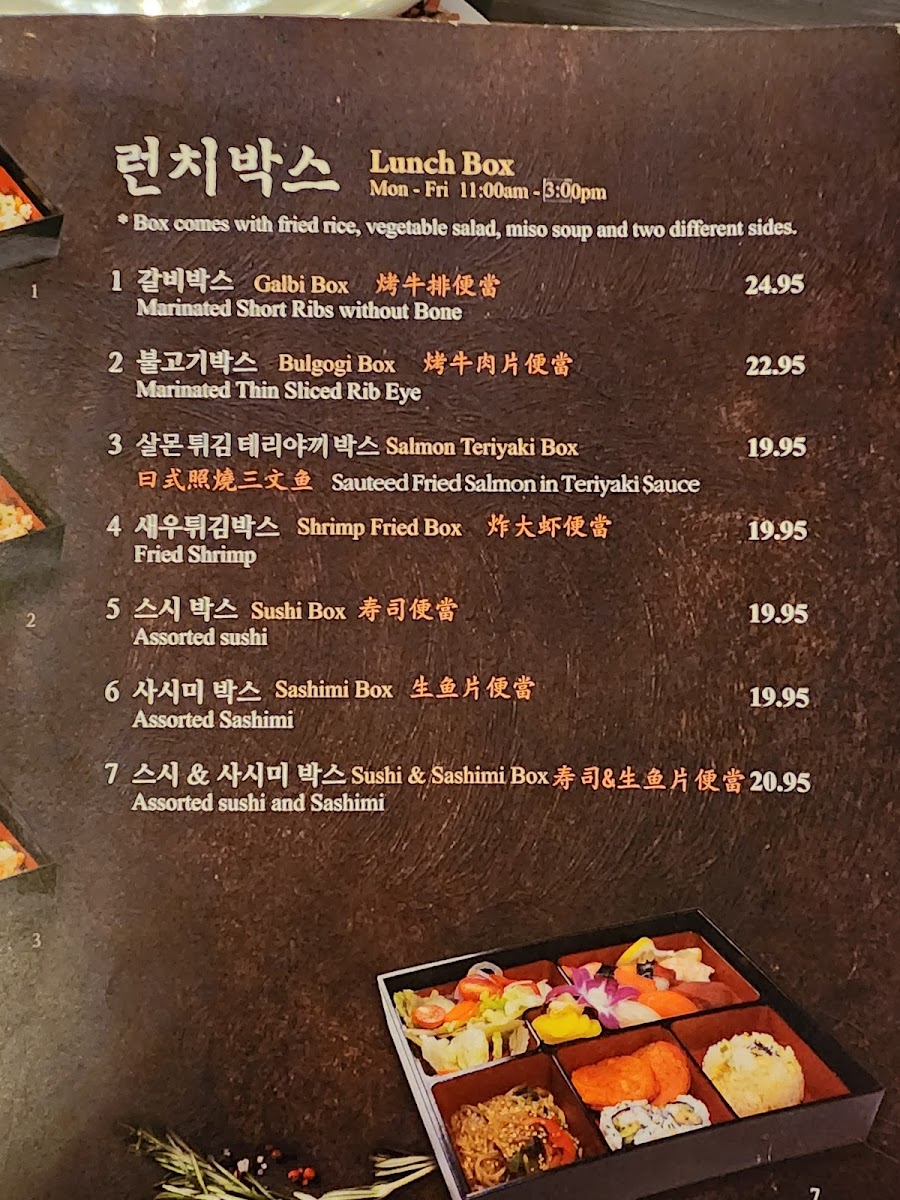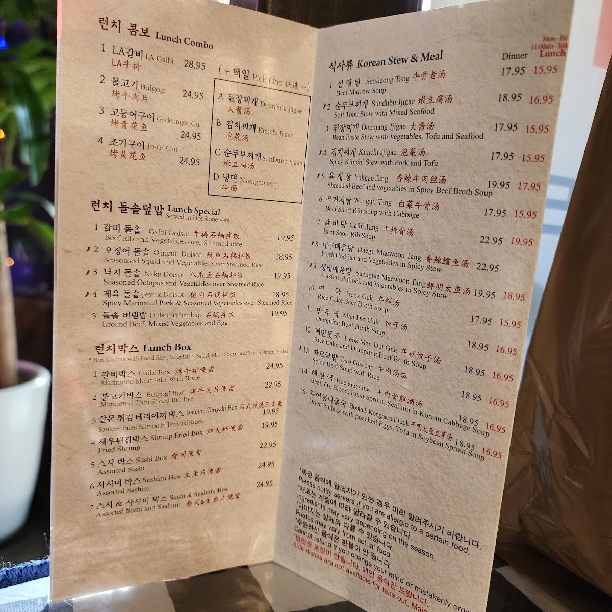 Chilsung Garden specializes in Korean barbecue, boasting a menu that features a delightful array of options designed to satisfy meat lovers and sushi aficionados alike. Notably, the hearty Seven Star Combo offers a sumptuous selection of prime dry-aged ribeye, marinated black Angus beef galbi, and a bottle of red wine to complement your meal. For those looking for something more varied, the Combo #1 or the Five Star Combo also showcase the smoky, savory tastes of short ribs and boneless duck, all accompanied by your choice of a refreshing bottle of sparkling water.